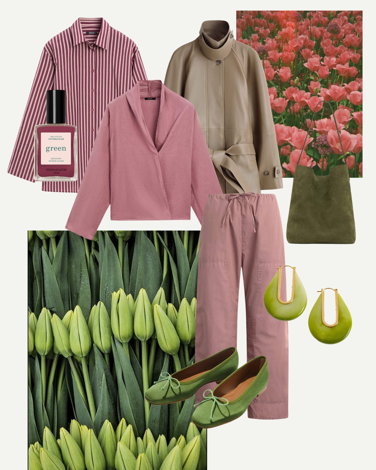 During a recent spring cleaning session, I stumbled upon a roll of disposables from the trip. Between the nostalgic grain of the photos and my freshly painted pink nails that felt spring-y, I felt a sudden urge to channel that energy into my wardrobe. I’ve put together an outfit inspired by those Dutch tulips: vivid, delicate, and beautifully fleeting.
